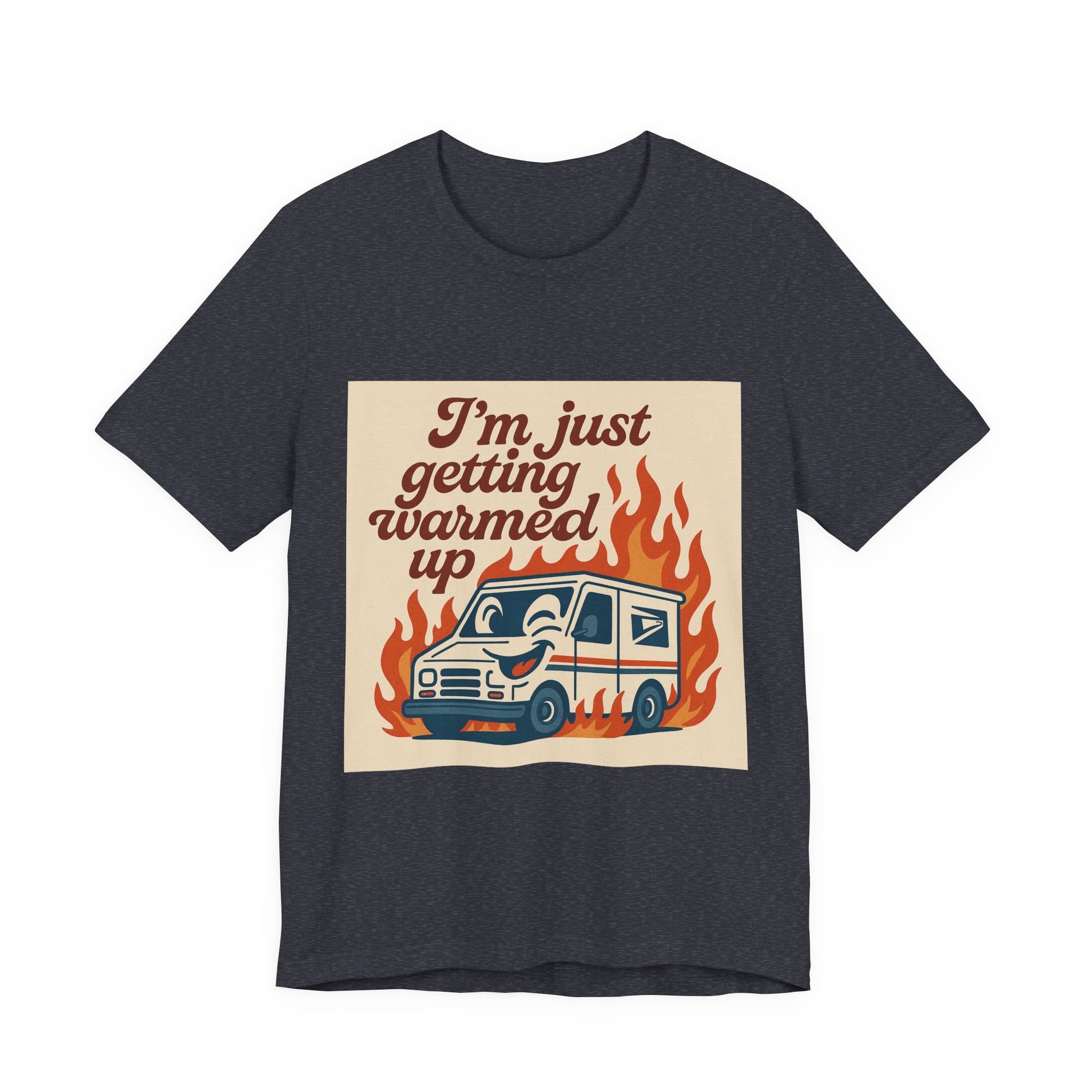 A soft, lightweight tee with a playful, LLV graphic.” The smooth Airlume cotton feels breathable against the skin and layers easily under jackets for hot days, cold days, or everyday wear. The retro illustration — a cheerful LLV surrounded by stylized flames — brings a tongue-in-cheek warmth to casual outfits, perfect for people who enjoy postal live, LLV humor, and ironic, cozy style. Thoughtful construction (side seams, ribbed collar, shoulder tape) keeps the shirt looking crisp through washes. Ethically made and REACH certified, it’s built to be worn and enjoyed on the move.